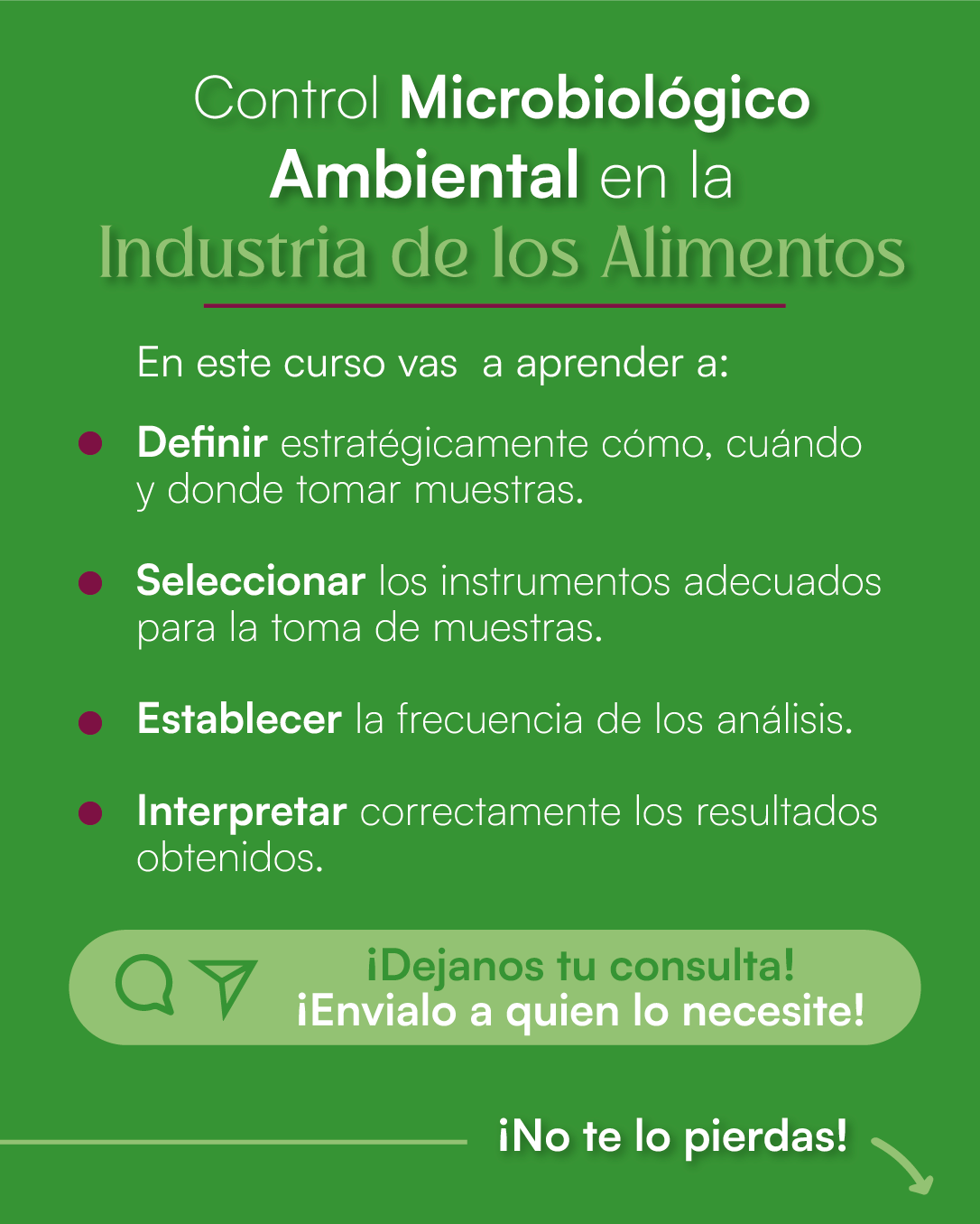 Este curso está dirigido a: (a) profesionales y estudiantes, como Biólogos, Microbiólogos, Ingenieros en Alimentos, Bromatólogos, Veterinarios, Ing. Agrónomos, Bioquímicos, Ingenieros Químicos, Técnicos vinculadas con la elaboración de alimentos; (b) personal del área de calidad de industrias y establecimientos elaboradores de alimentos; (c) personal de organismos de control; (d) asesores de calidad en industrias de alimentos.